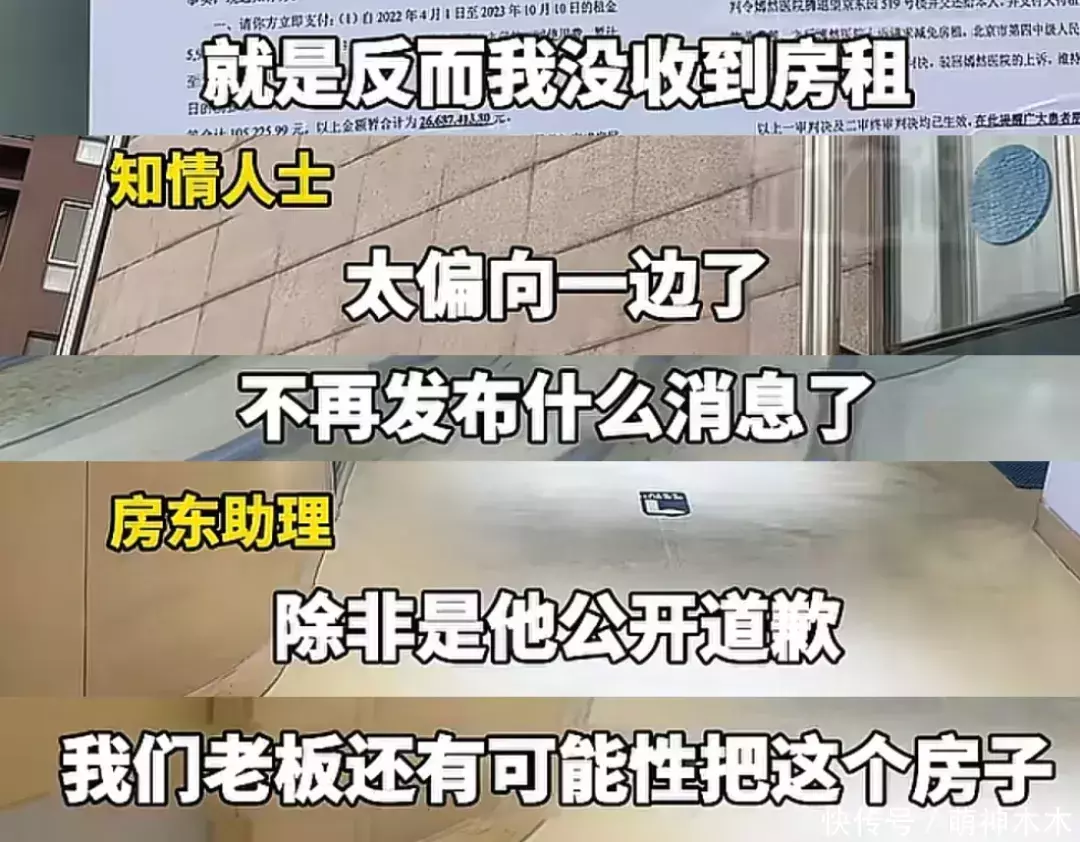 据知情人透露,房东对于当前“没收到房租,反而是我的错”的舆论很无奈,认为过度偏向李亚鹏一边,不再对外做出回应。而房东助理则暗示李亚鹏继续续租的可能性较小,他表示李亚鹏只有公开道歉,老板才有可能会按市场价把房子租给他,否则没有可能。